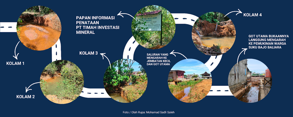 Namun, pada kondisi debit air yang tinggi terutama saat puncak musim hujan kapasitas kolam penampung diperkirakan tidak mampu menahan seluruh aliran. Air yang bercampur lumpur kemudian meluap. Dari kolam penampung, aliran itu diarahkan ke selokan besar atau got utama. Bermula dari titik inilah, indikasi pencemaran berupa muntahan air bercampur sedimen bergerak langsung menuju area permukiman Suku Bajo di Desa Baliara.