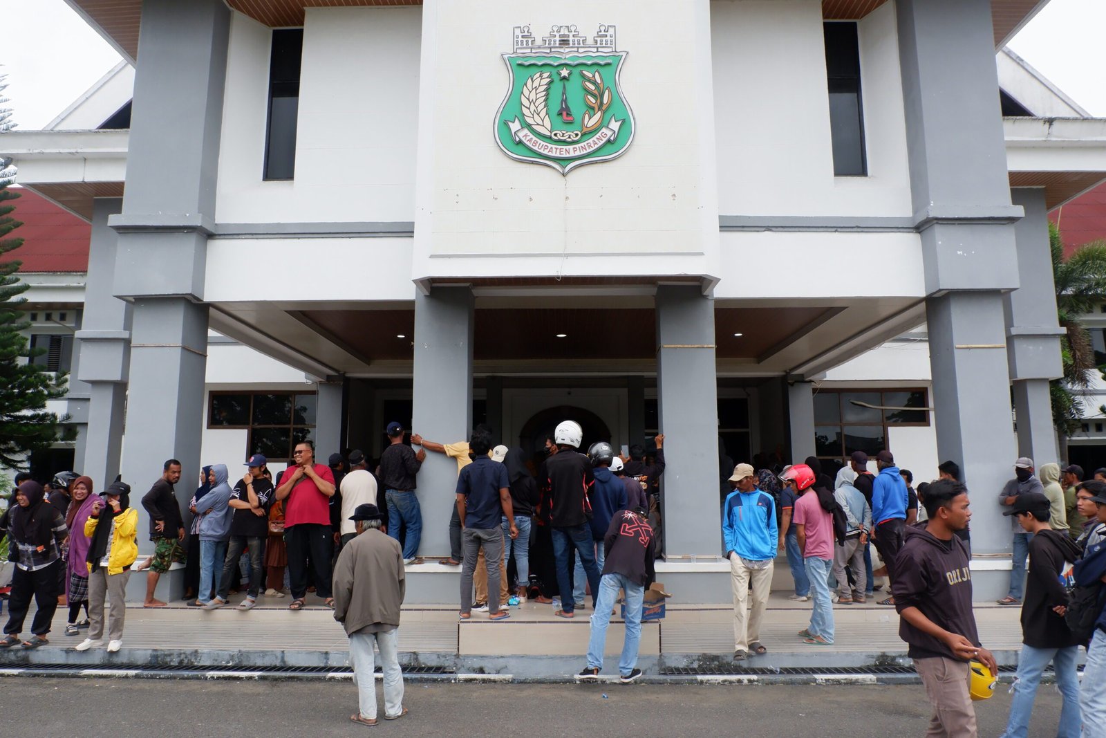 Puluhan warga dari dua desa mendatangi Kantor Bupati Pinrang. Mereka menerobos masuk dan menuntut agar semua izin tambang di muara Sungai Saddang dicabut. Mereka menganggap kehadiran tambang mengancam kehidupan petambak dan petani.