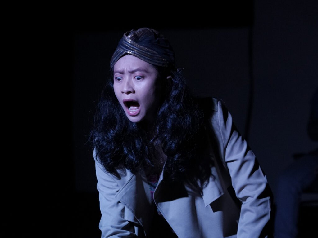 Diam menjadi strategi dramatik yang muncul berulang kali. Dalam beberapa momen, strategi ini berhasil meninggalkan kesan, seperti ketika aktor berhenti sejenak seolah menahan sesuatu yang berat. Dari gerakan jari hingga ketukan kecil di lantai, diam bekerja sebagai jeda untuk menyaksikan pergolakan batin Seruni. Namun, jeda terlalu panjang untuk persiapan emosi atau perubahan energi tubuh, menjadikan diam terlepas dari tensi dramatik. Membuat penonton kehilangan arah dalam menafsirkan maksud.